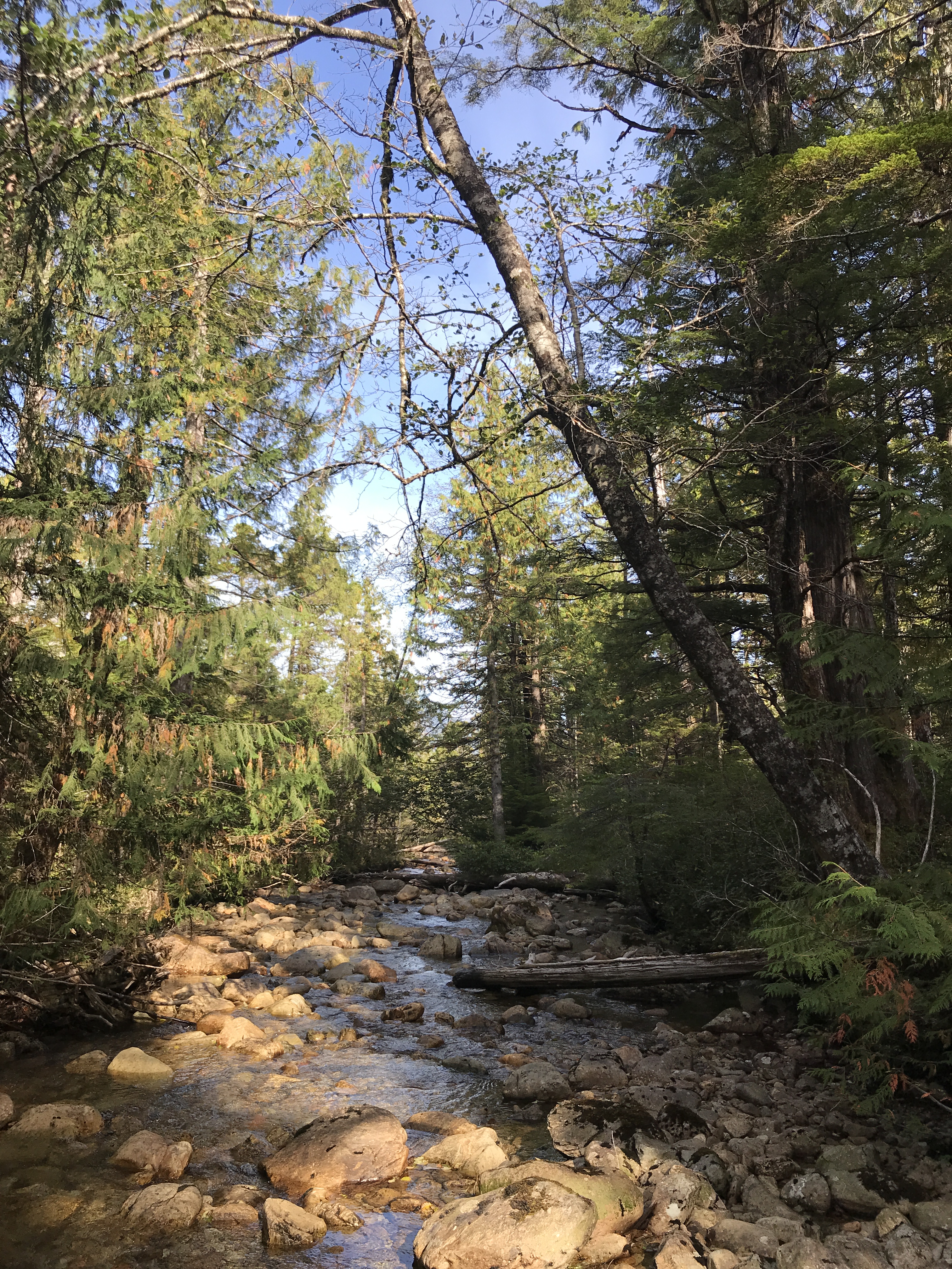 This camera watches over a place where 2 trails cross a creek.