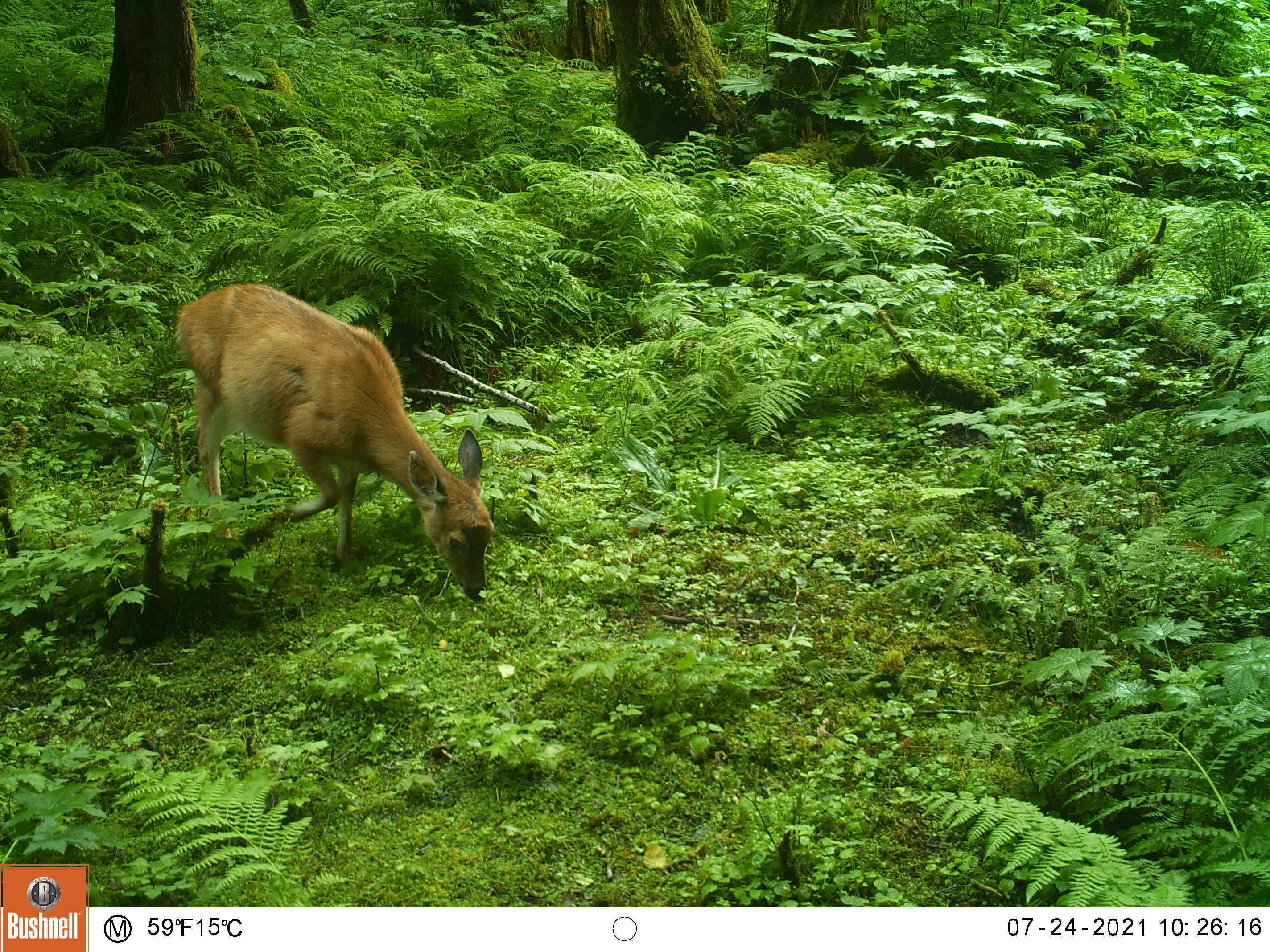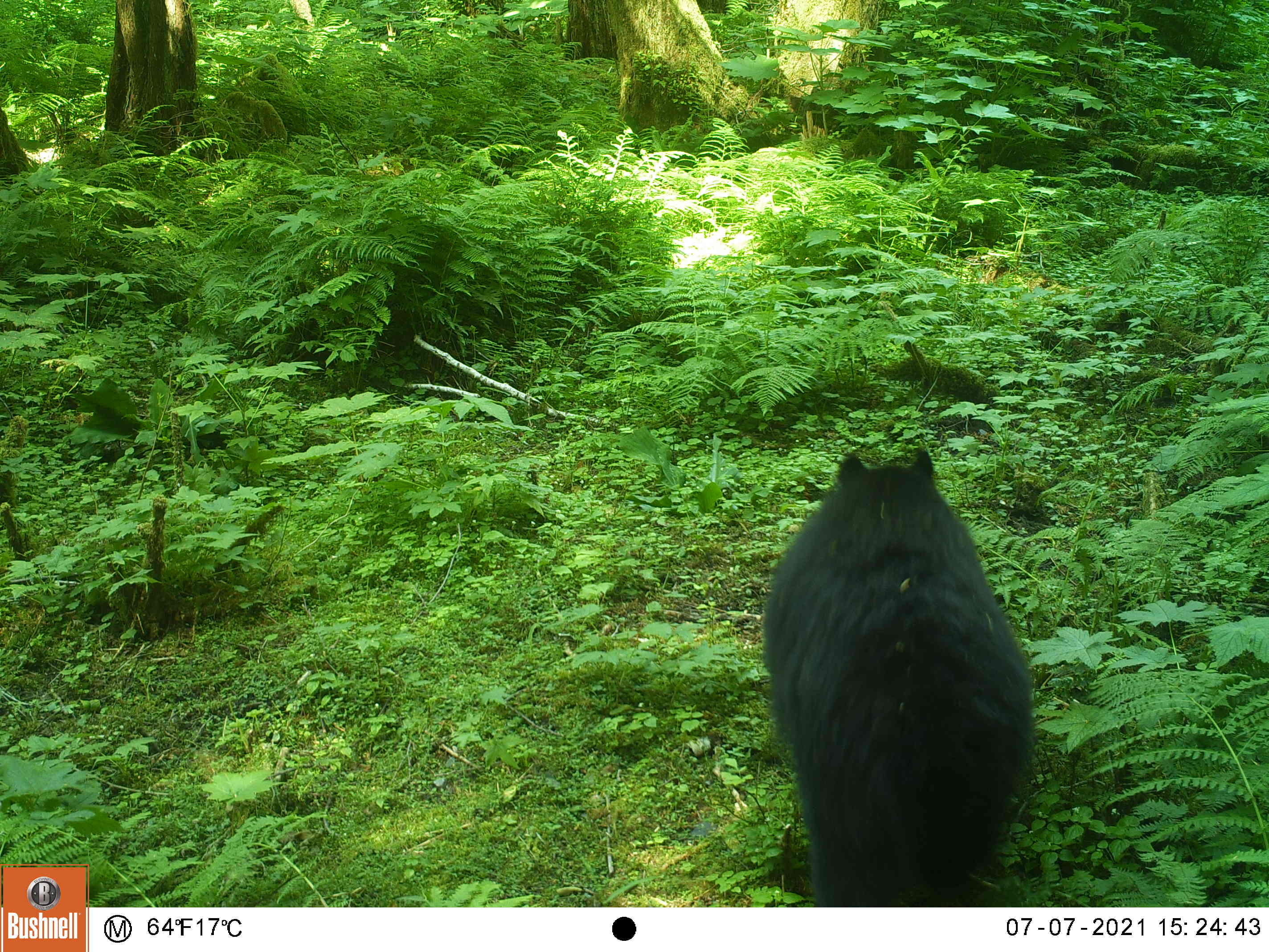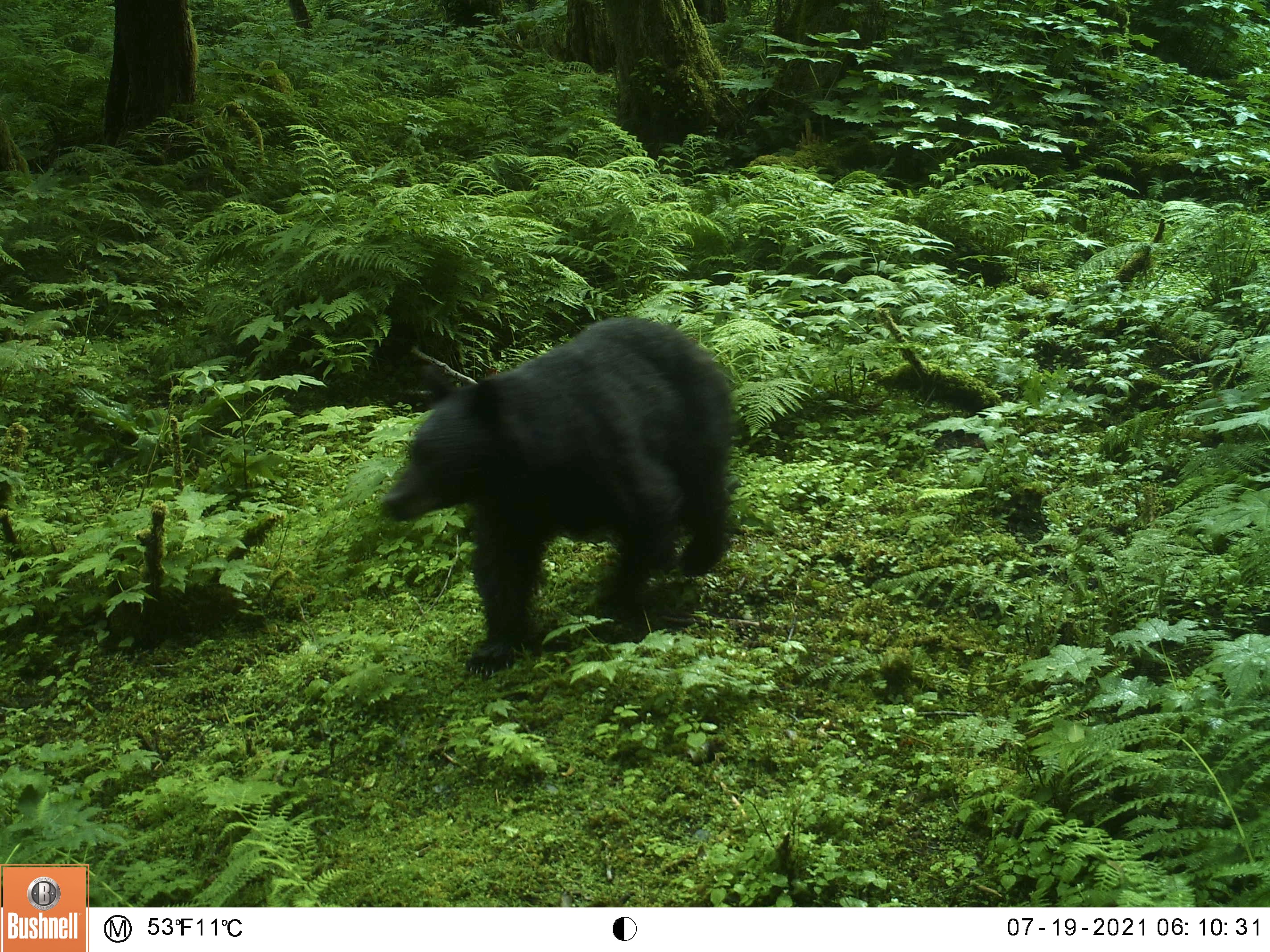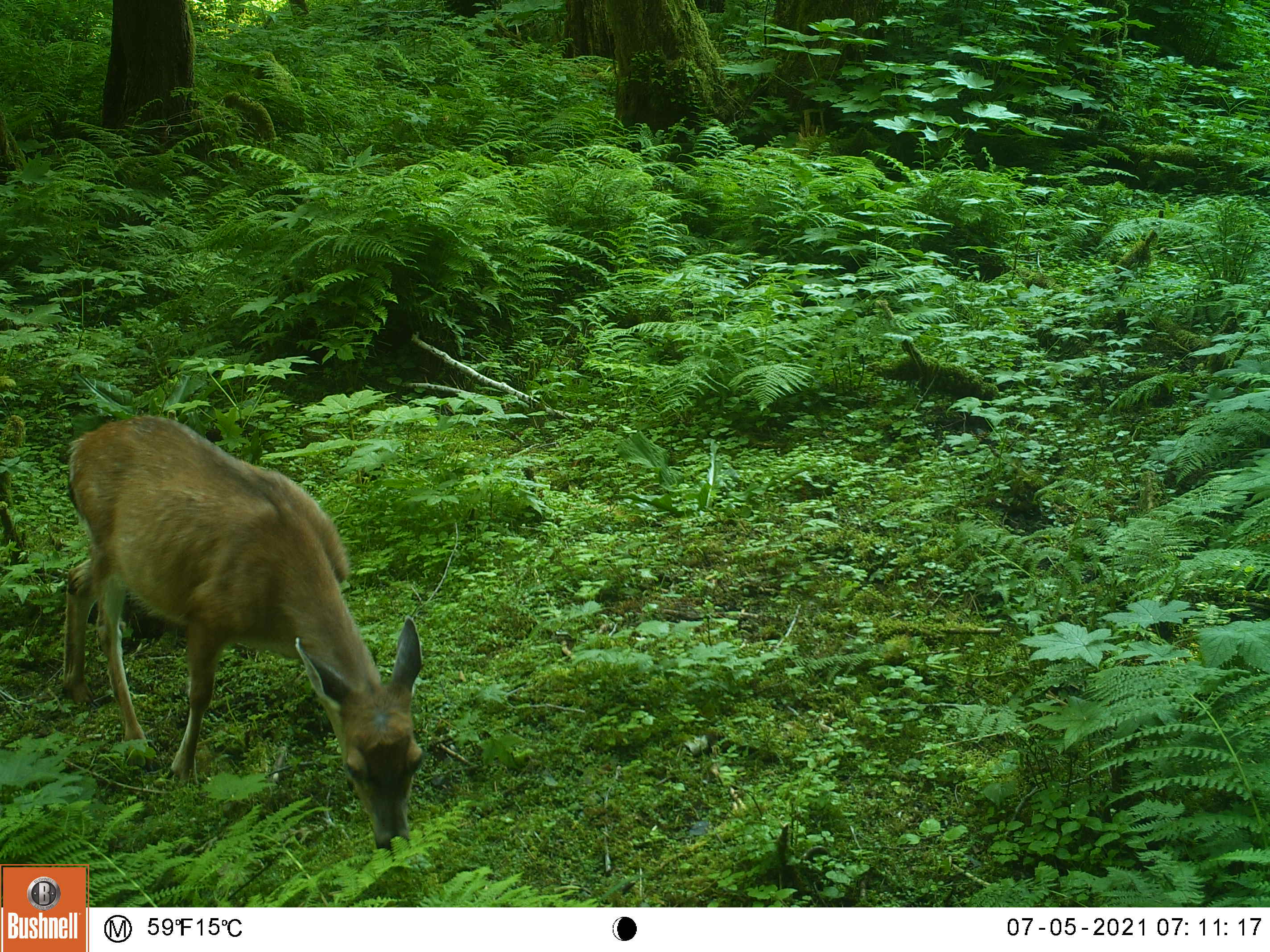 I created this little feeding area by chopping down a thicket of 10 foot tall salmonberry and elderberry bushes. This area is also a wide funnel formed by the beach on the left and some steep ravines on the right, my clearing gives the animals a reason to stop by my camera as they pass through.