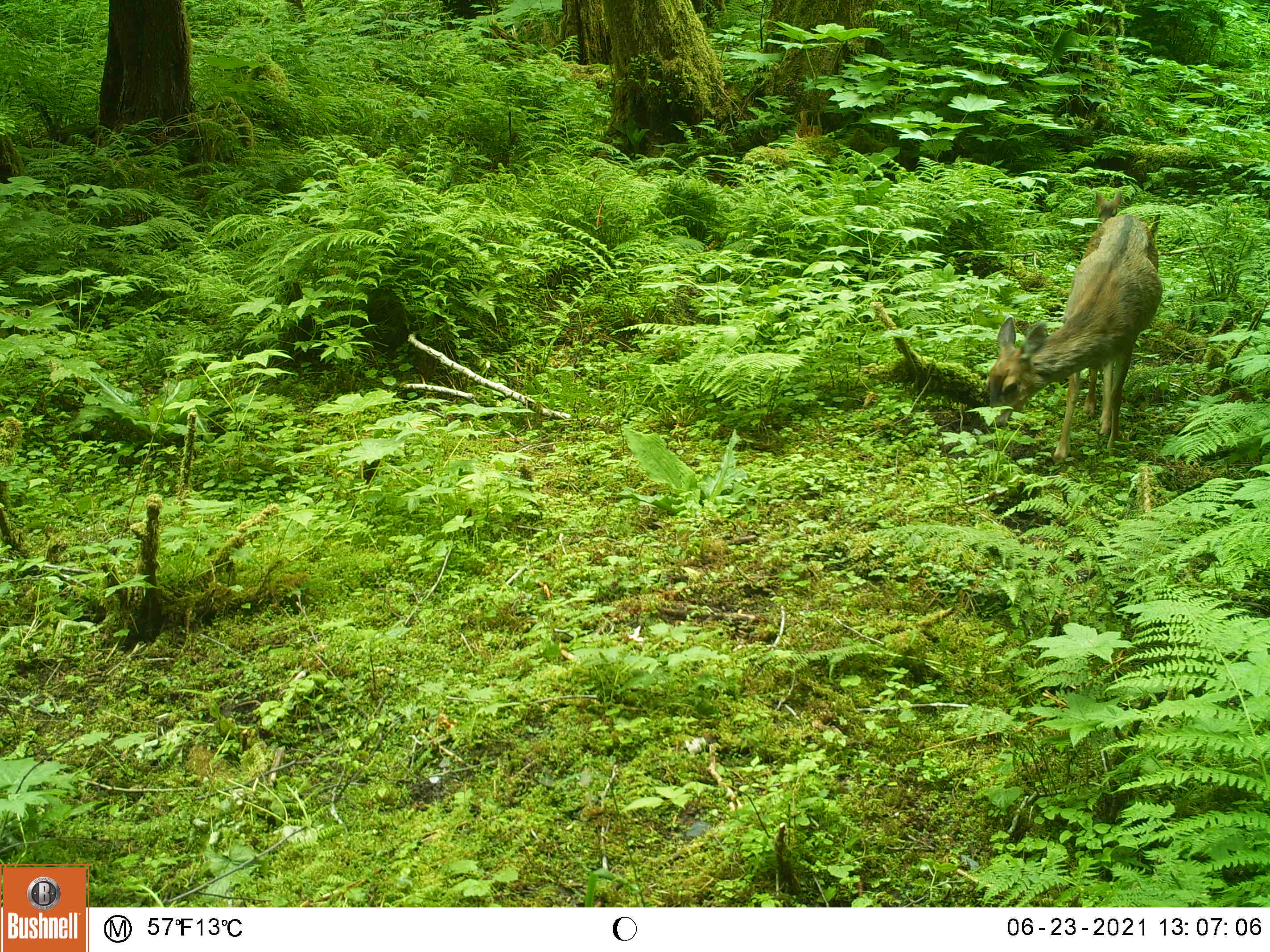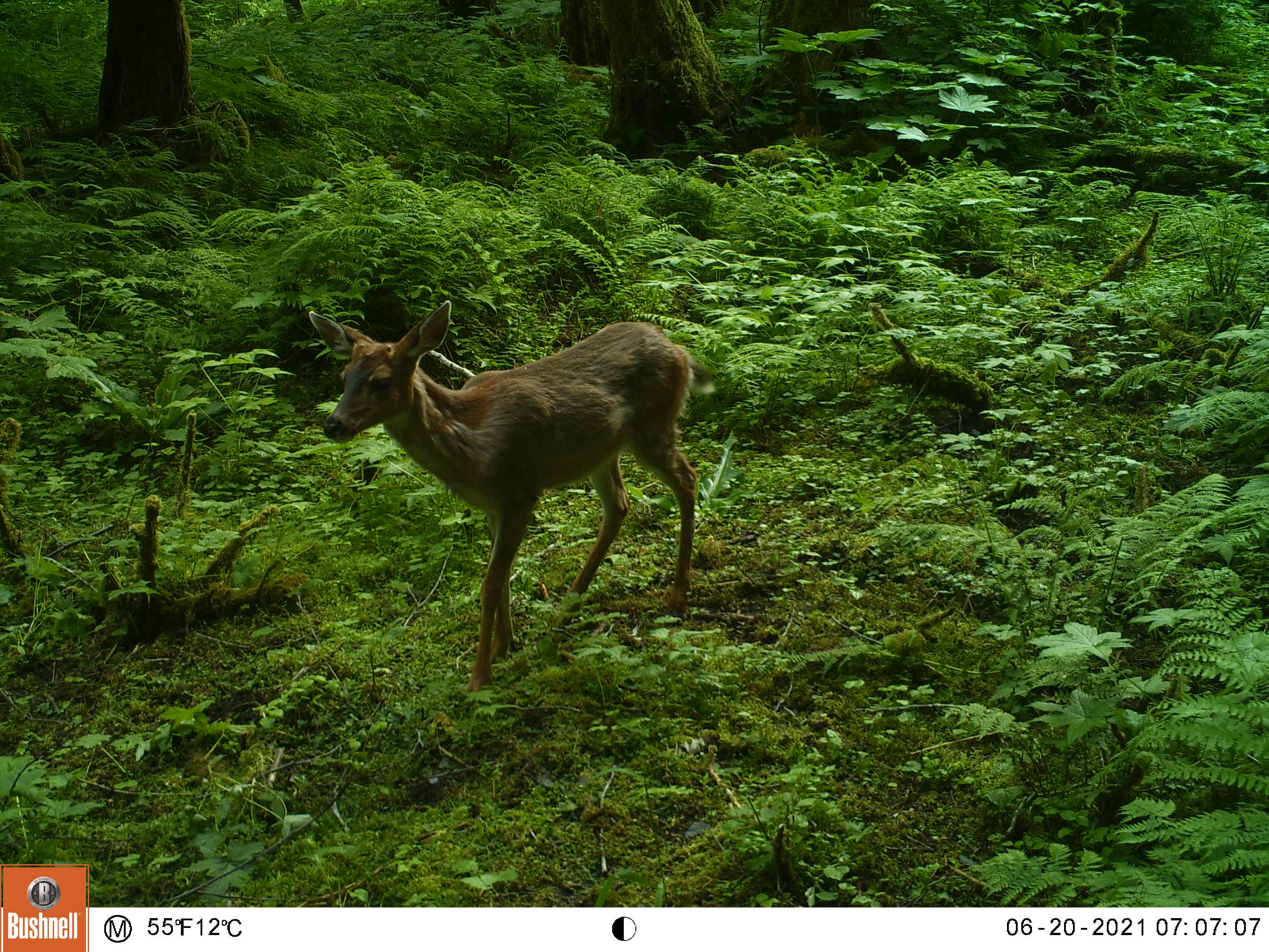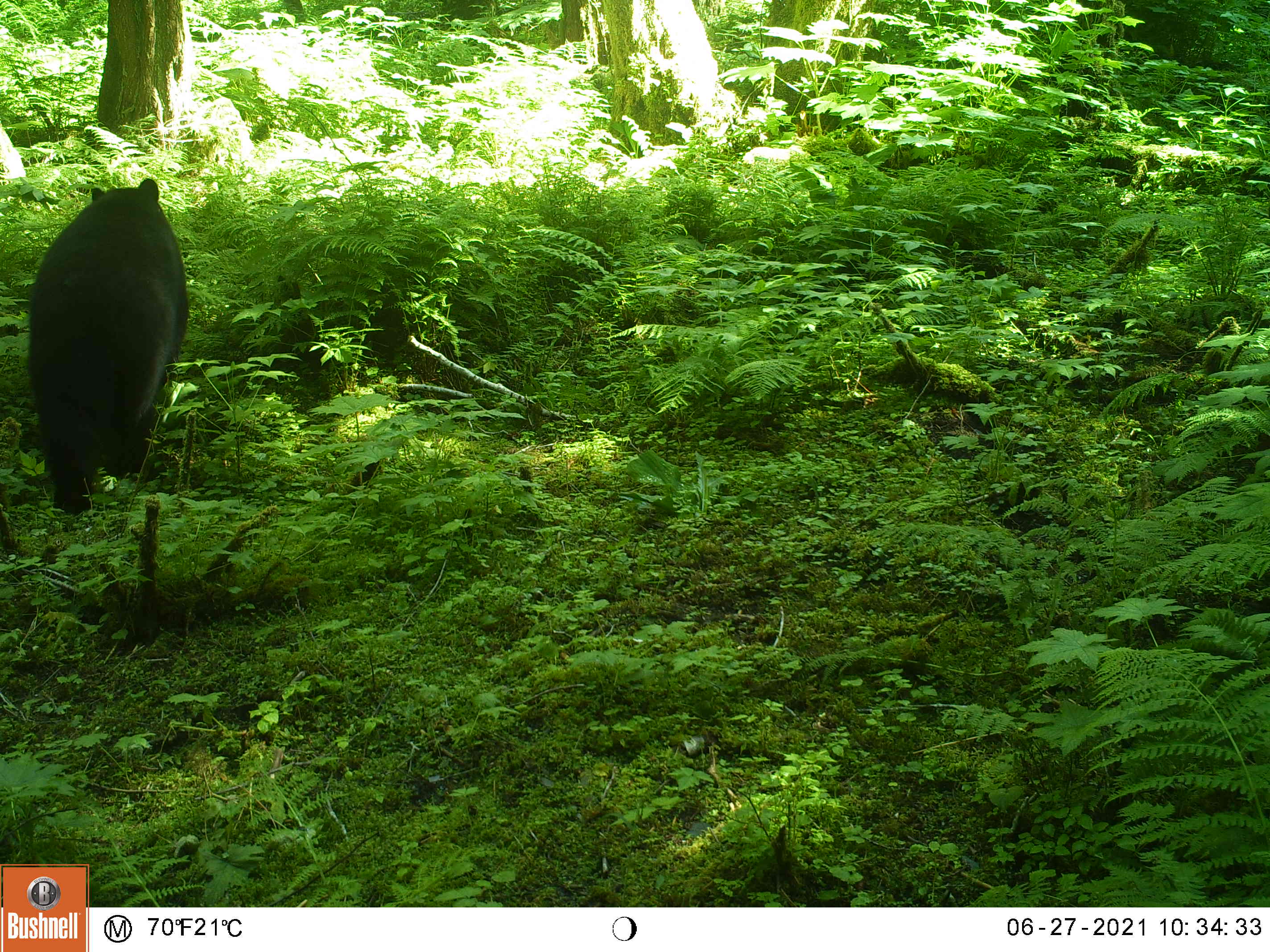 I created this little feeding area by chopping down a thicket of 10 foot tall salmonberry and elderberry bushes. This area is also a wide funnel formed by the beach on the left and some steep ravines on the right, my clearing gives the animals a reason to stop by my camera as they pass through.