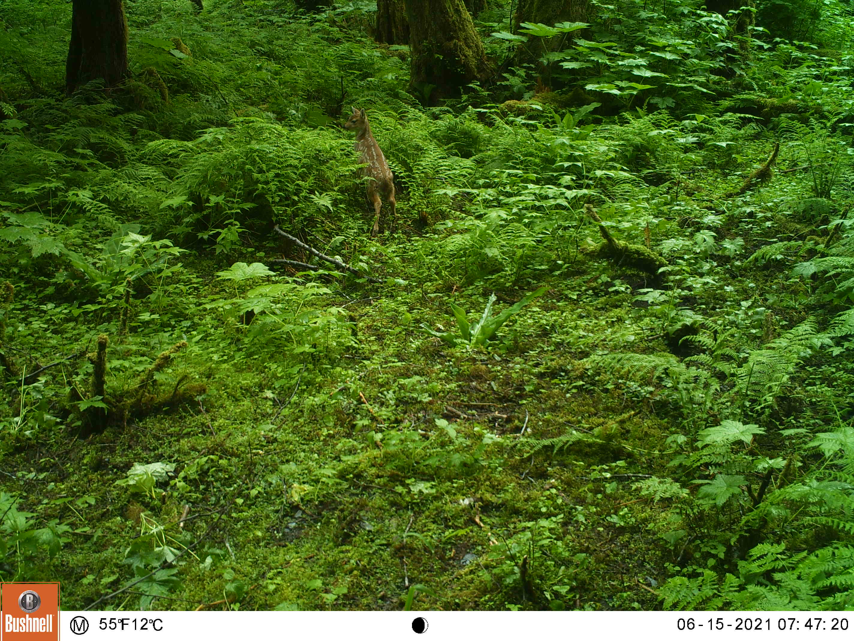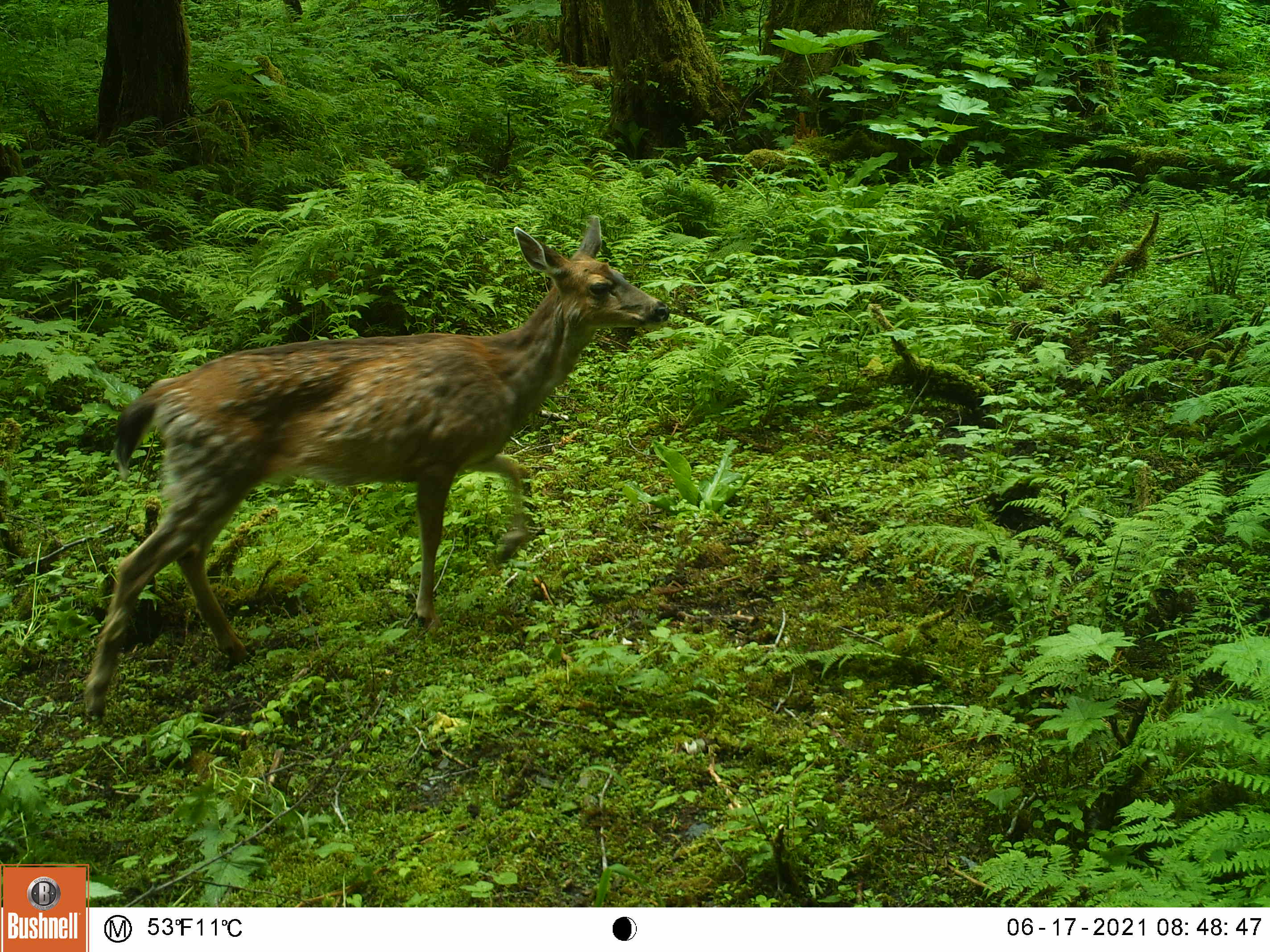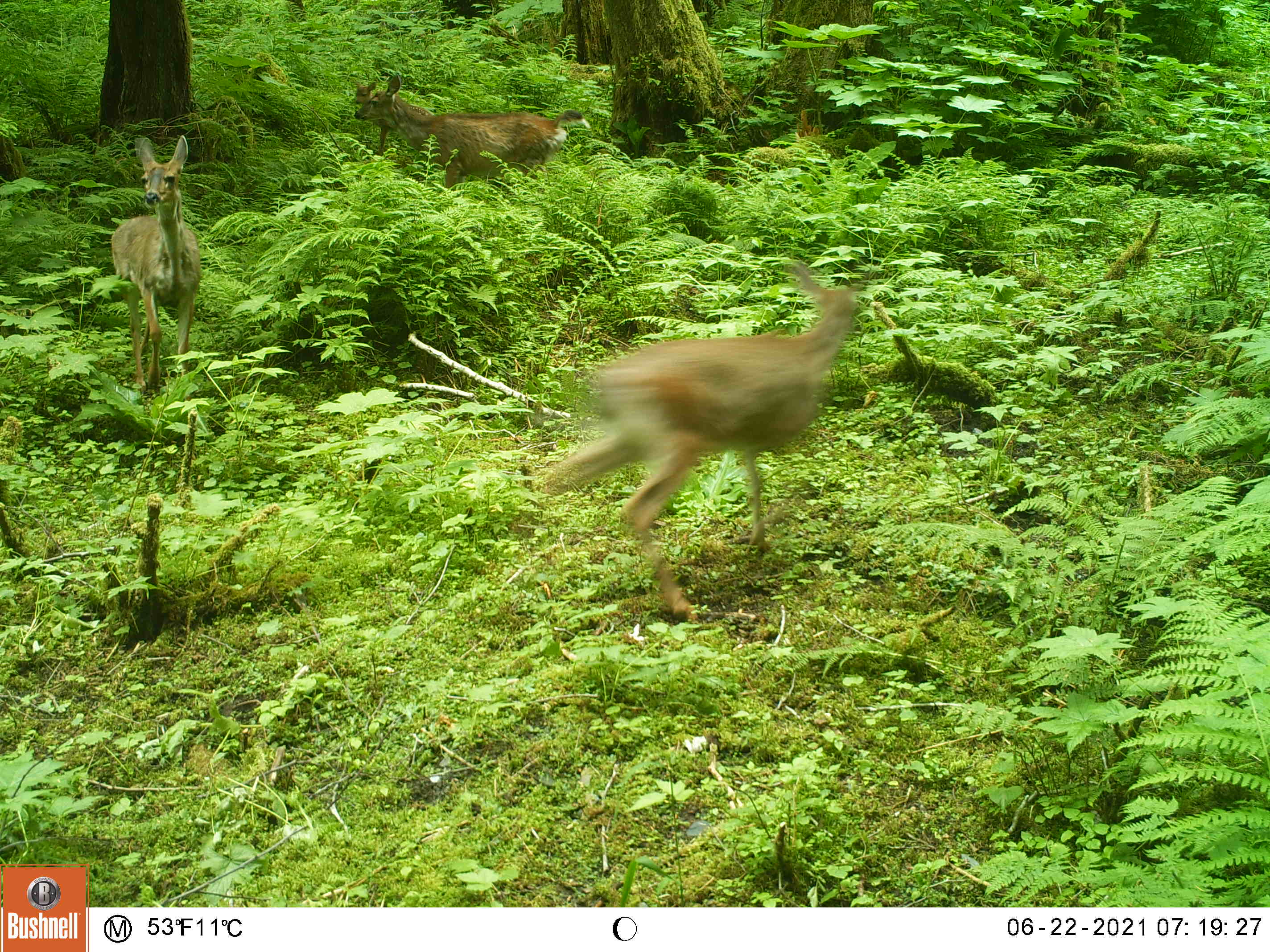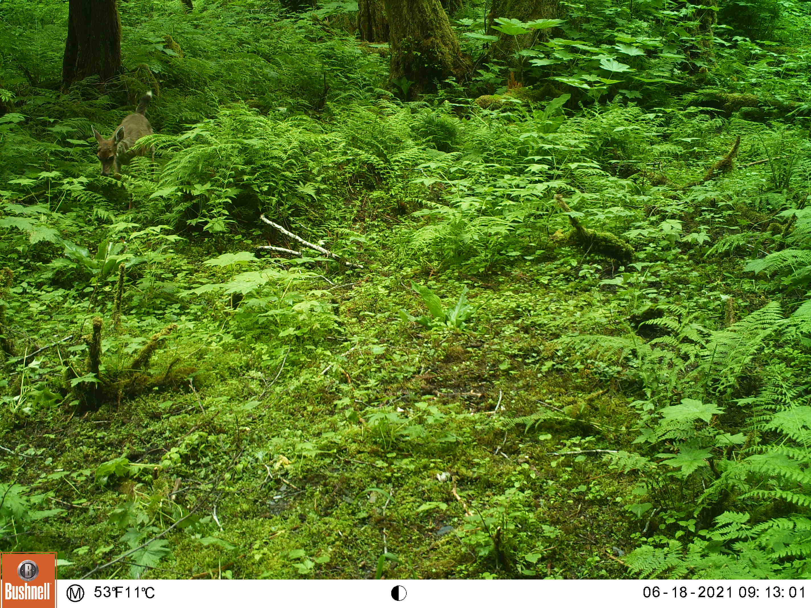 I created this little feeding area by chopping down a thicket of 10 foot tall salmonberry and elderberry bushes. This area is also a wide funnel formed by the beach on the left and some steep ravines on the right, my clearing gives the animals a reason to stop by my camera as they pass through.