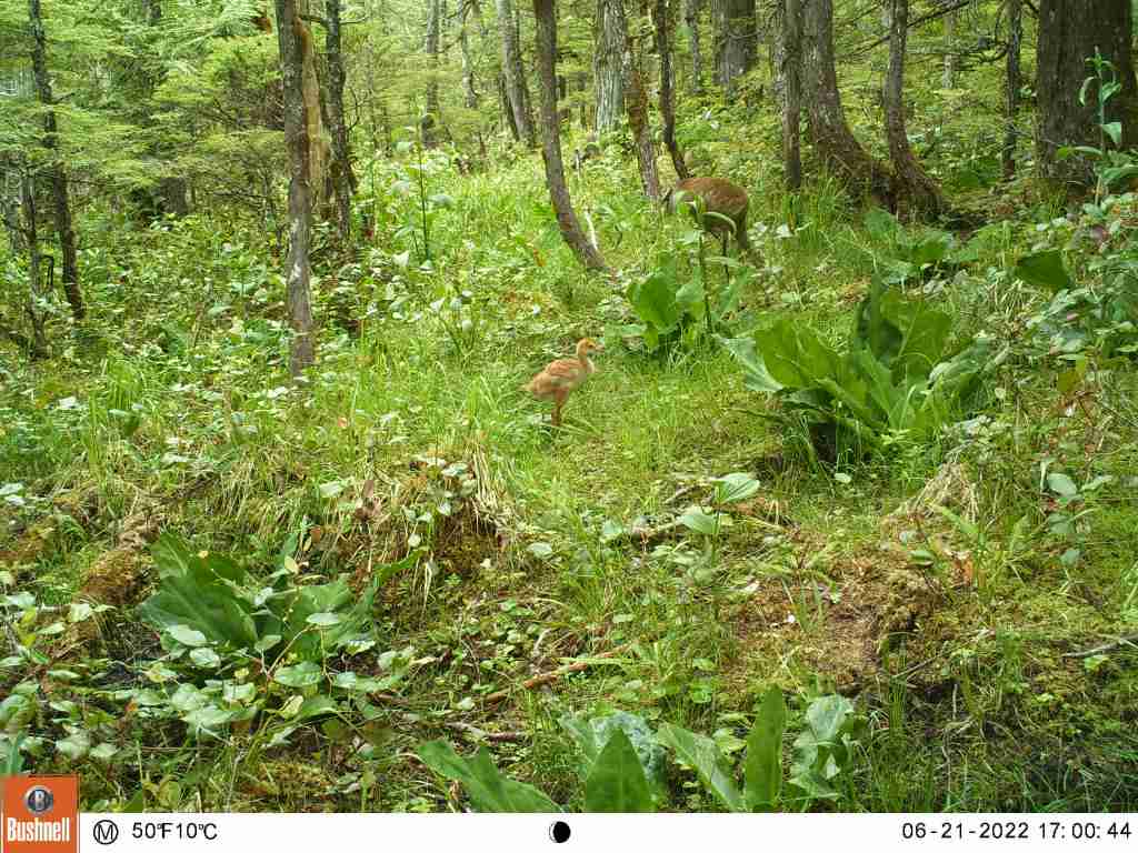 There isn’t a lot of documented proof of sandhill cranes breeding in the Ketchikan area so it’s nice to get a picture of them with their young around here.