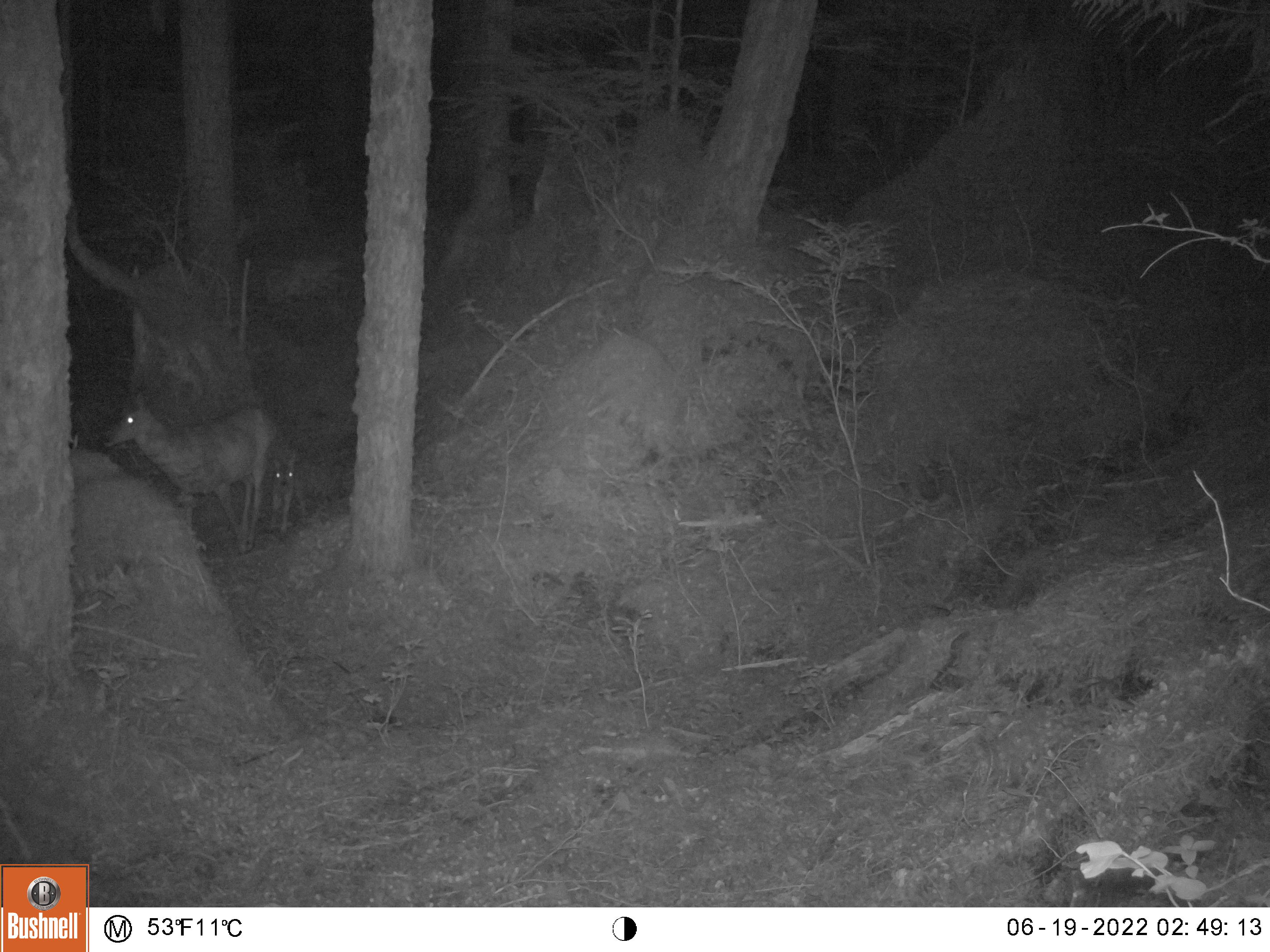 This camera overlooks a spot where 3 main trails come together to form 1 that climbs a steep hillside behind the camera. There is a lot of action here but most of the animals in the pictures are blurry so I switched it to record videos.