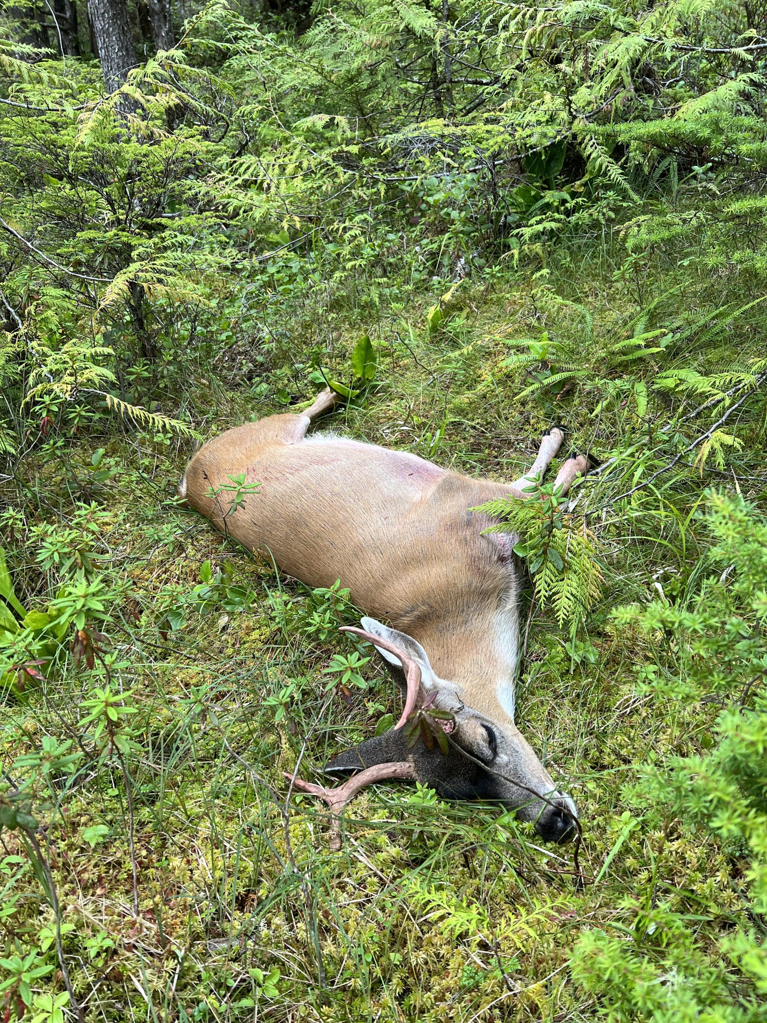 At the end of a long day of wandering the woods and muskegs looking for deer and checking trailcams I filled 1 of my 4 deer tags on a young buck.