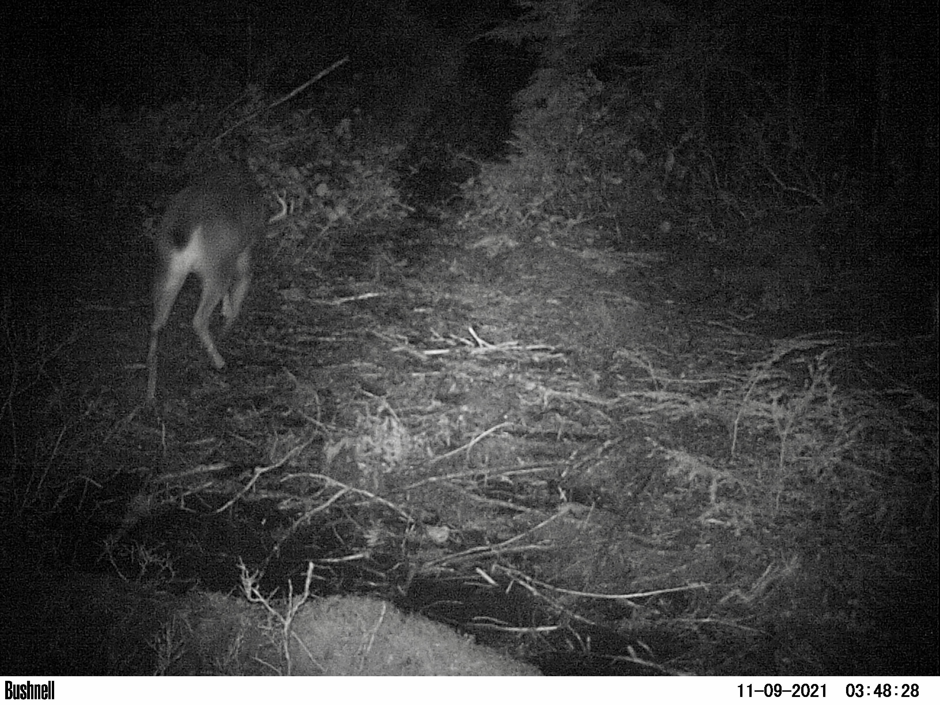 This camera was in the same area and suffered the same fate, the little black wolf was a cool capture, to bad it didn’t hold still for a better picture.