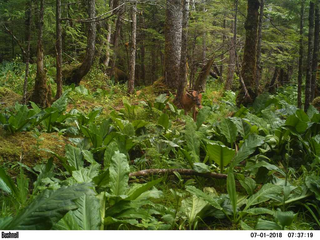 Skunk Cabbage is a great place to set cameras for Sitka Blacktail Deer; they will eat all these plants down to the stems, and when it’s gone, they will still nibble on the buds that will produce next year’s plants, which makes these areas good year round.